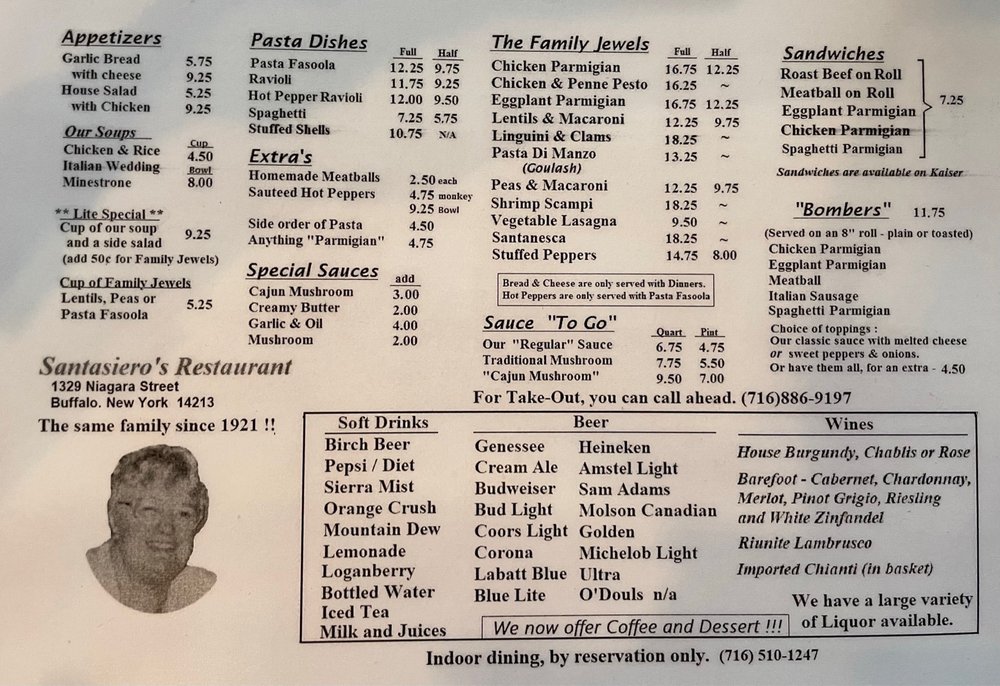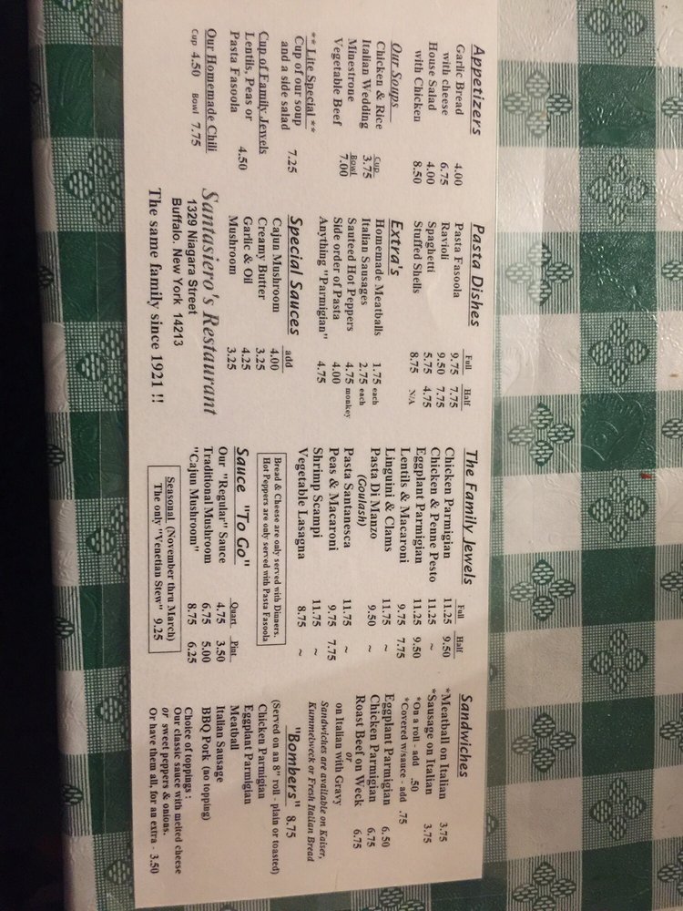 Welcome to Santasiero's Restaurant, your go-to destination for authentic Italian cuisine nestled in Buffalo, NY. This charming eatery combines a warm, casual atmosphere with a menu that highlights traditional favorites. Start with their garlic bread or a house salad before diving into hearty mains like the much-loved spaghetti parm, praised for its generous portions and unbeatable value.
