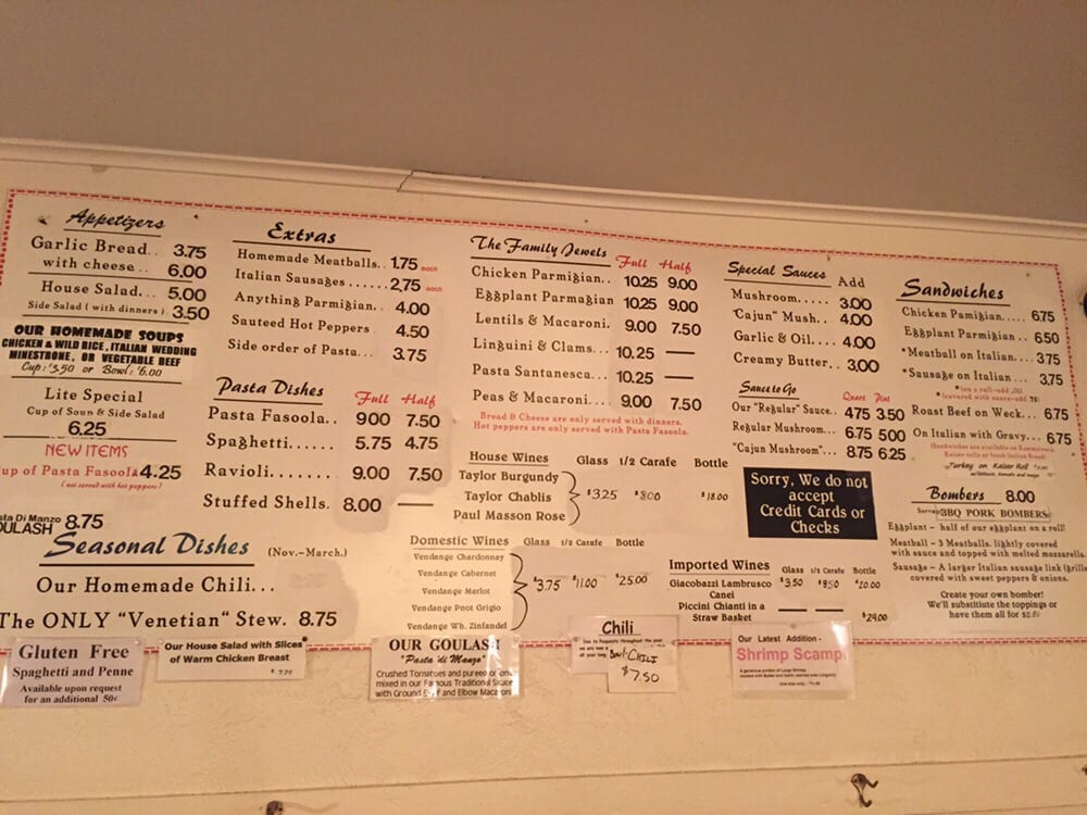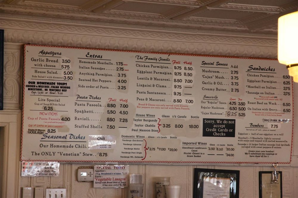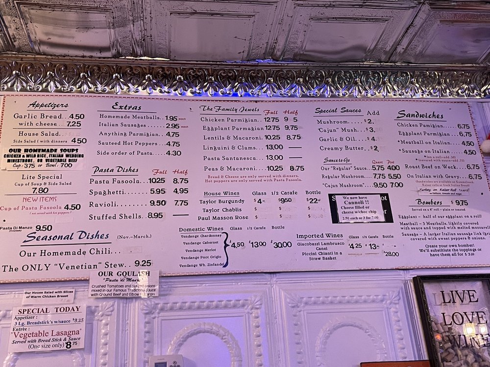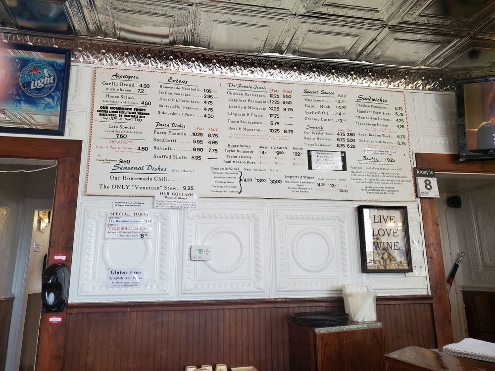 The menu features a delightful selection of soups, including the comforting Italian wedding and minestrone, perfect for a cozy meal. While the restaurant offers limited vegetarian options, it's ideal for families and groups, making it a welcoming spot for lunch or dinner. Although takeout orders may vary in timing, the friendly staff and quality food ensure a satisfying experience. Don't forget to try their famous pasta fazool, a local favorite!